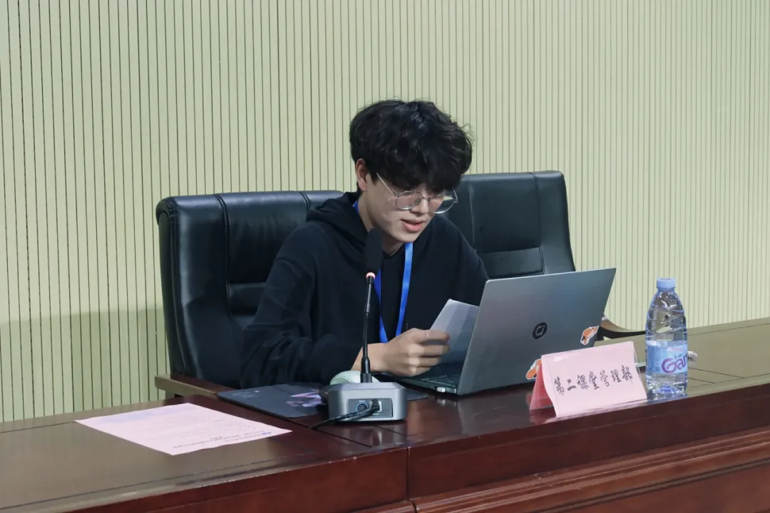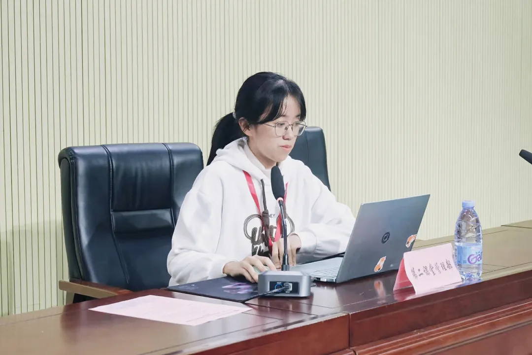 (图为校团委第二课堂管理部部长朱炫羽汇报工作情况)