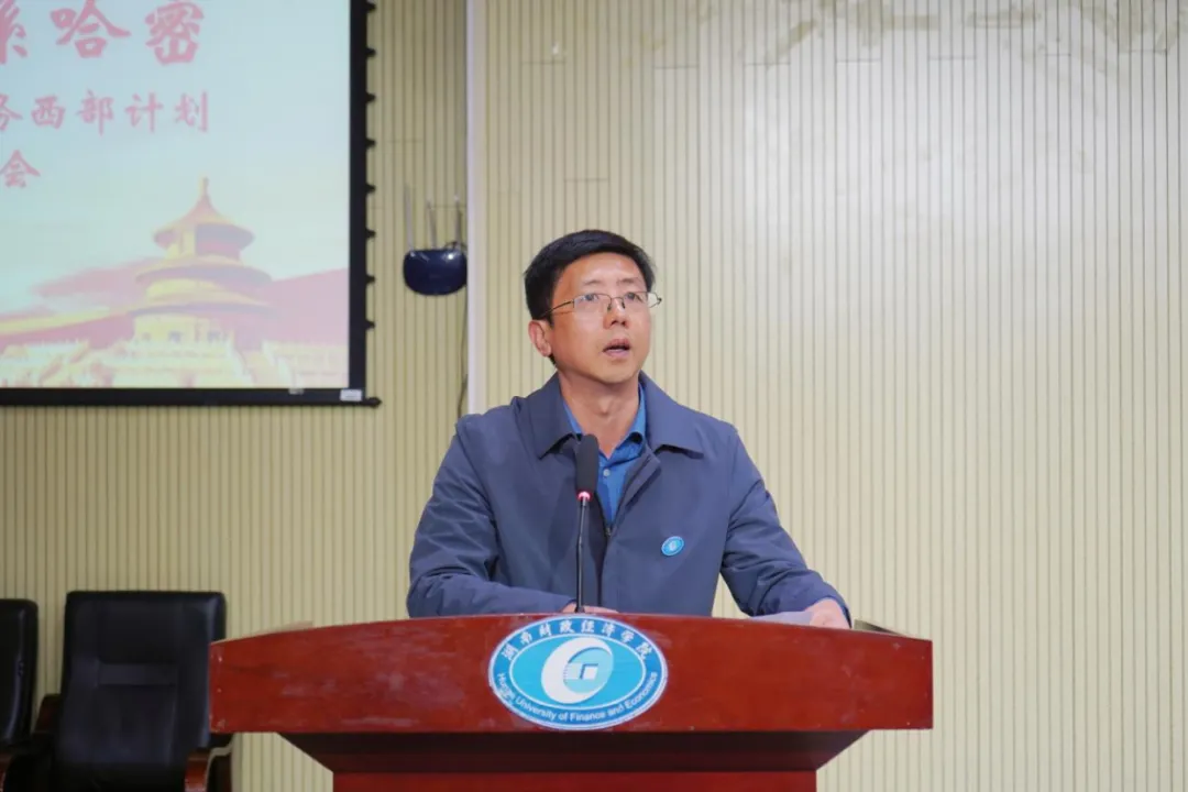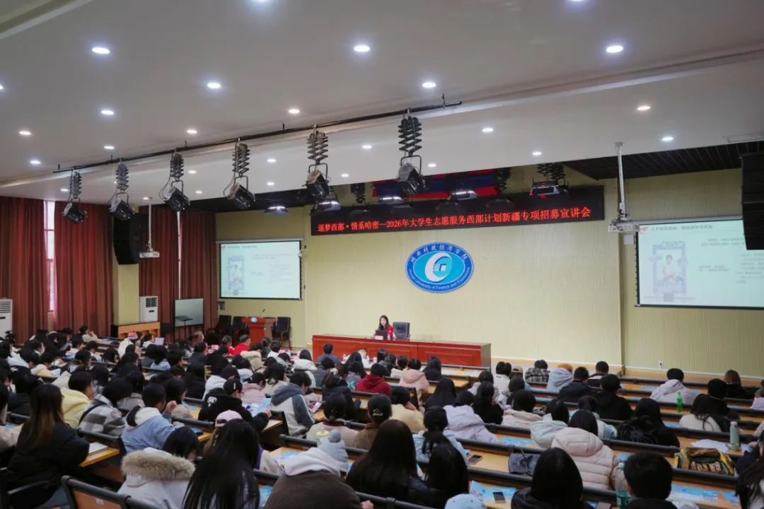 12月5日下午,WilliamHill官网逐梦西部·情系哈密——2026年大学生志愿服务西部计划新疆专项招募宣讲会在主校区第二教学楼阶梯教室2J03顺利举行。共青团哈密市委书记张晓瑾、校团委书记刘天浩、湖南省西部计划项目办联络员王俞宁、团哈密市委西部计划项目办联络员张鑫鑫、团哈密市伊州区委西部计划项目办联络员曹银旺、团巴里坤哈萨克自治县委西部计划项目办联络员王思彤、能源算力融合(哈密)研究院西部计划志愿者郑茄华、校团委老师及各二级学院2026届毕业生代表参加本次会议。会议由校团委书记刘天浩主持。