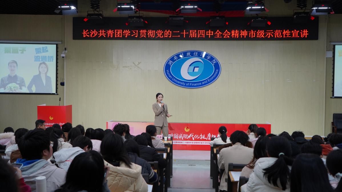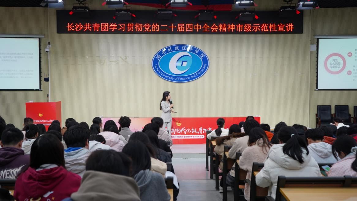 共青团湖南省委办公室主任宁涛根据党的二十届四中全会精神,围绕青年成长和思想政治进步,并结合我省《关于建设年轻人友好省份的实施意见》相关文件进行分享,号召青年学子将发展机遇转化为奋进动力,以青春之我、奋斗之我,为建设中国式现代化湖南篇章添砖加瓦。