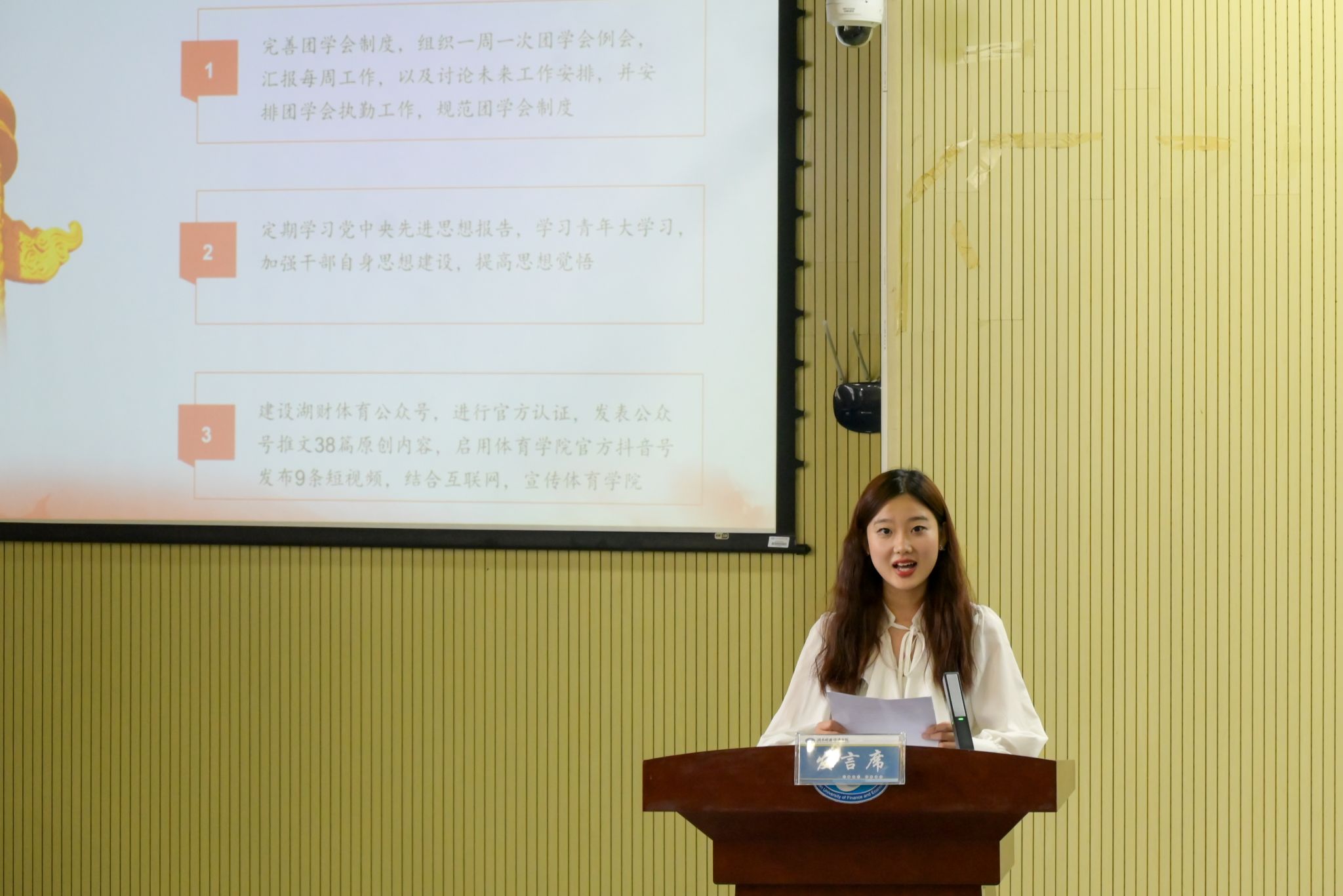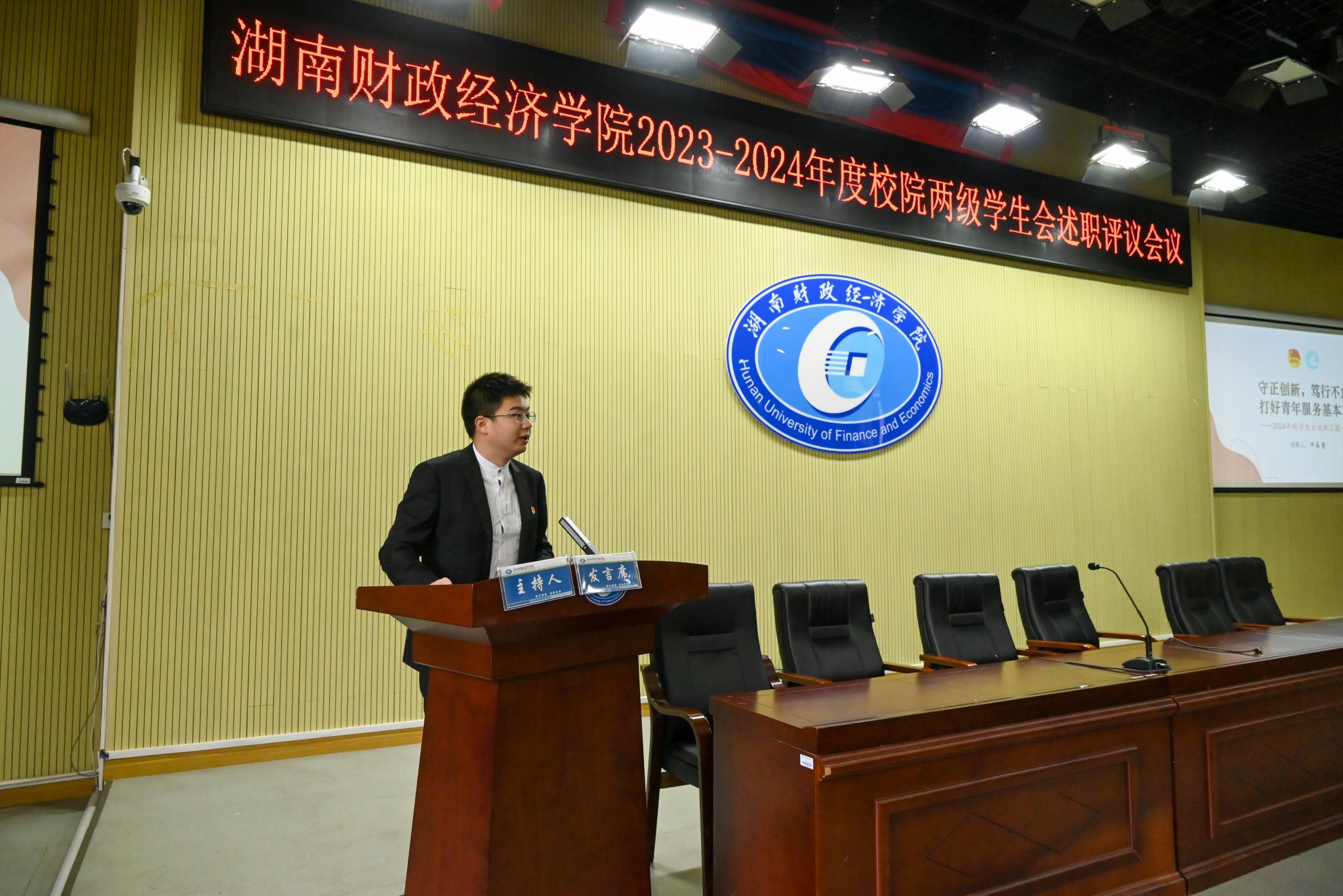 (图为校学生会主席团成员进行述职汇报 钟博康摄)