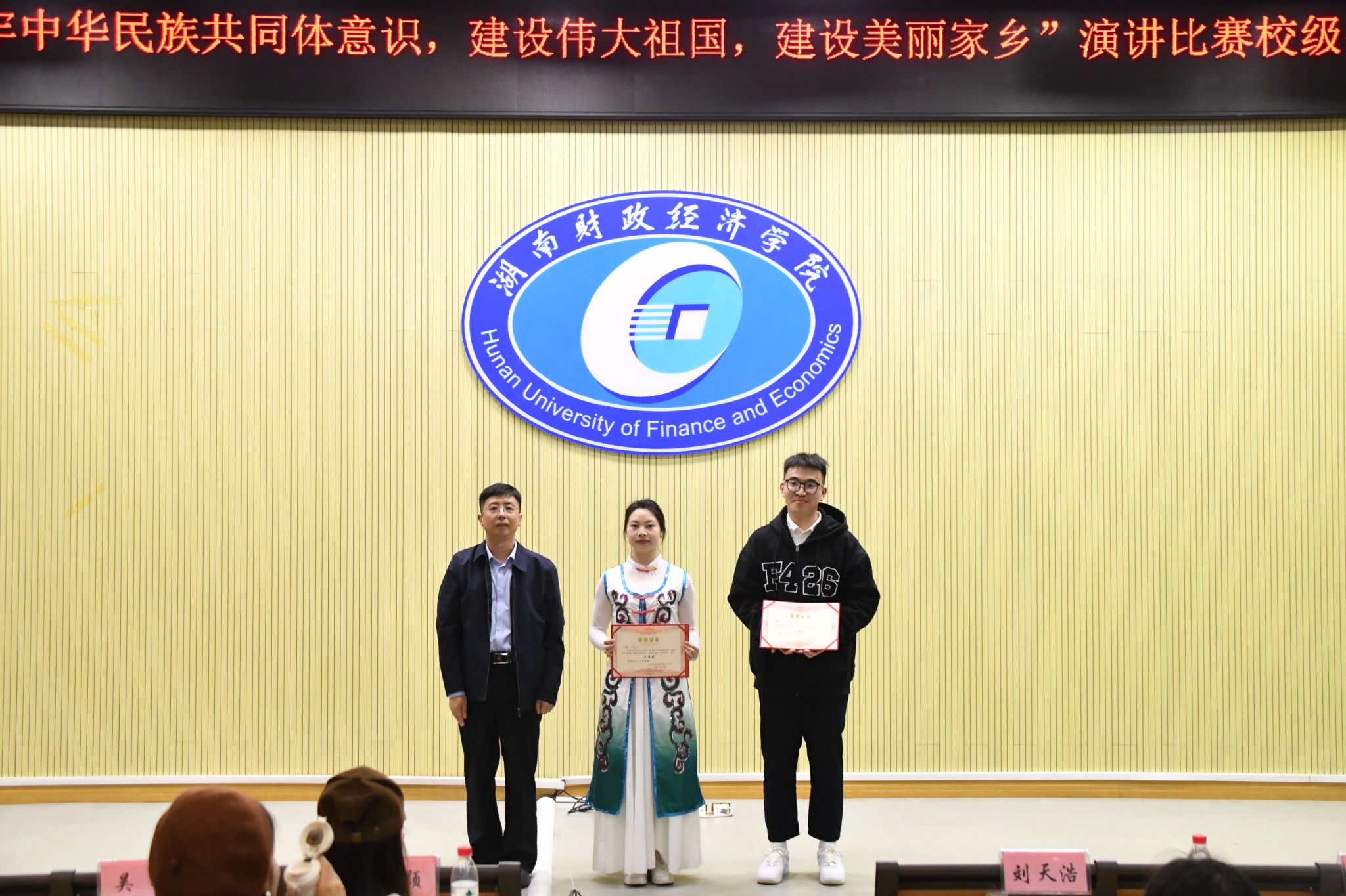 校团委书记刘天浩为二等奖选手代表颁奖并合影留念