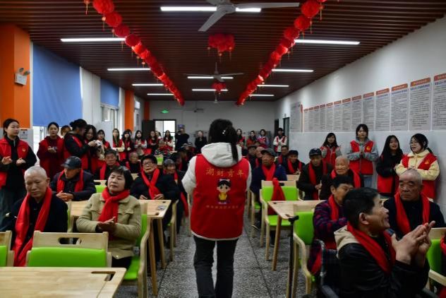 本次活动,志愿者们精心准备合唱、舞蹈等文艺节目,用满溢的热忱为老人们送去了欢声笑语。在互动环节,志愿者与老人们共同参与创意棉签画、塑料袋拓印画、弹跳乒乓球等趣味活动,现场氛围温馨融洽,尽显湖财学子敬老爱老、乐于奉献的良好风貌。