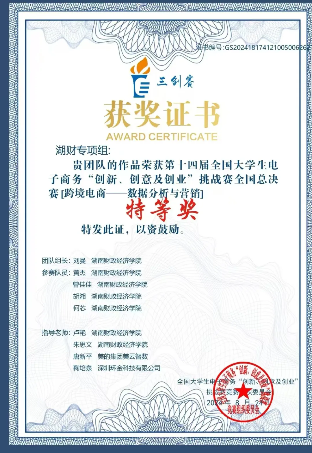 胡湘不仅在志愿服务中表现出色,她的学业成绩更是始终位于专业第一;在“创新创意创业”跨境电商比赛中,胡湘凭借扎实的知识积累荣获国家特等奖。与此同时,胡湘连续三年获得了“国家励志奖学金”。她认真学习的态度,为同学们树立了良好的榜样。