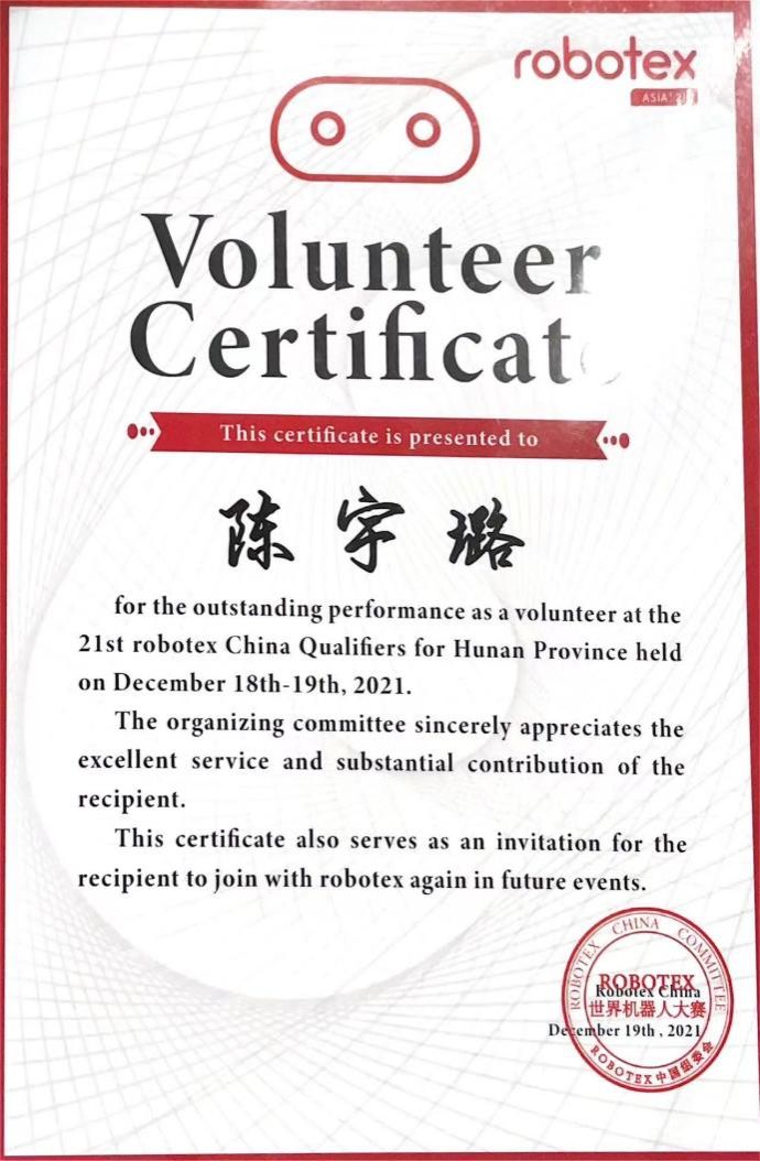 她,积极投身社区实践,磨砺自身,奉献社会。自大学起,便活跃于各类志愿服务活动。从上海国际时尚艺术节到彩虹公益社的书信伴女孩行,再到robotex世界机器人大赛,她不仅是参与者,更是裁判组组长,以专业与热情赢得了“优秀志愿者”称号。