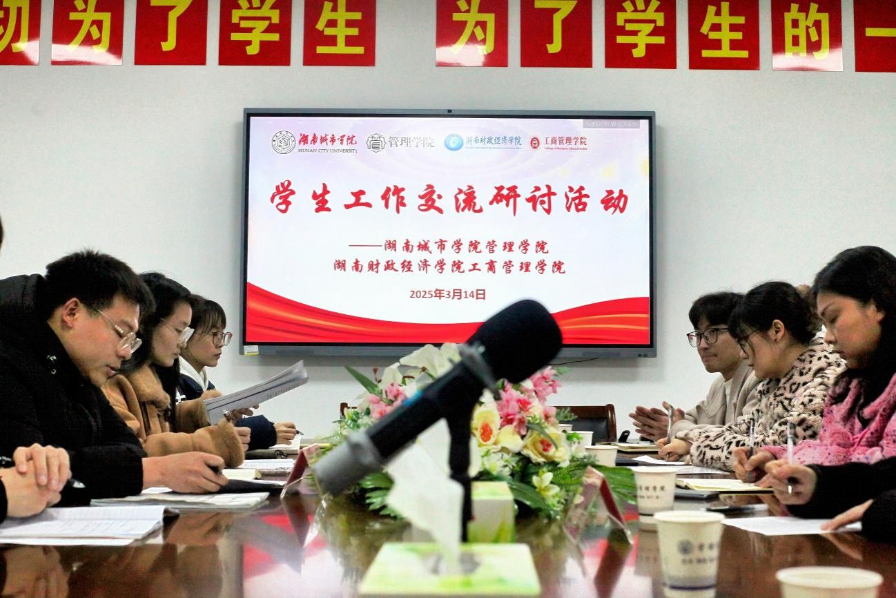 黄柱星对我院一行的到来表示热烈欢迎,并详细介绍了湖南城市学院管理学院在学生工作方面的独特做法和丰富经验。他强调,在高等教育日益注重质量与内涵发展的当下,学生工作不仅关乎学生的成长成才,更关乎学院的整体办学水平与社会影响力。双方一致认为,加强交流与合作,共同探索学生工作的新思路、新方法,是推动两院学生工作创新发展的关键所在。