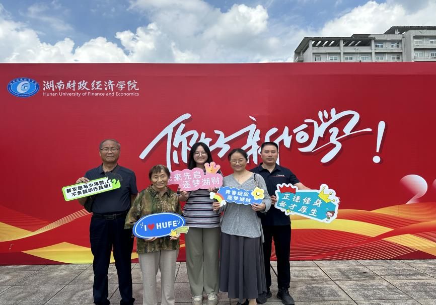 图为新生与家长合照 文婕摄