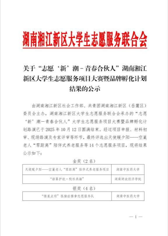 为促进高校志愿服务项目化、专业化与品牌化发展,10月12日下午,由湖南湘江新区社会工作部、共青团湖南湘江新区(岳麓区)委员会主办,湖南湘江新区大学生志愿服务联合会承办的“志愿‘新’潮-青春合伙人”大学生志愿服务项目大赛暨品牌孵化计划路演,于湖南湘江新区桔子洲街道学堂坡社区成功举行。WilliamHill官网语翼飞翔志愿服务队凭借申报的“语翼护航·校社共融”项目,在外国语学院党委副书记张鹏老师的悉心指导下,从七十余个参赛项目中脱颖而出,荣获大赛金奖。