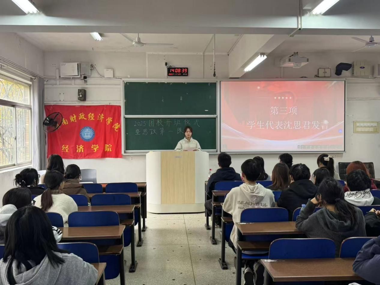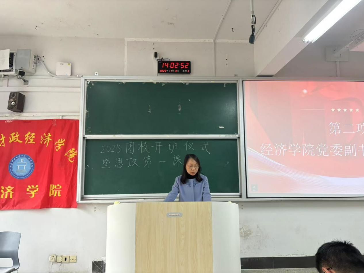 经济学院团总支书记宋赛男老师以《新时代合格共青团员——努力成为堪当民族复兴重任的时代新人》为题给学员授思政第一课。课上,宋赛男老师以“共青团的光辉历史”“团的基本知识”“团员的权利与义务”“青年,你为什么入团”四部分展开授课,以自己的亲身经历深入浅出进行讲解,为学员筑牢思想根基,助力青年明确方向,以更昂扬姿态投身学习与实践。