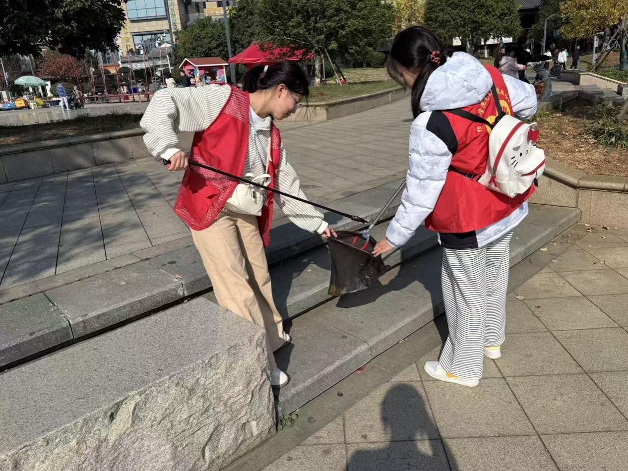 清理途中不乏挑战:灌木丛中缠绕的塑料袋难以直接触碰,队员们便分工协作,一人扶稳枝条、一人用夹子小心勾取;石缝中卡着的顽固垃圾无法用力拉扯,大家便蹲身找准角度耐心夹取。寒风轻拂,热情不减,志愿者们额发间的汗珠和全神贯注的身影,正是“奉献、友爱、互助、进步”精神的最佳写照。
