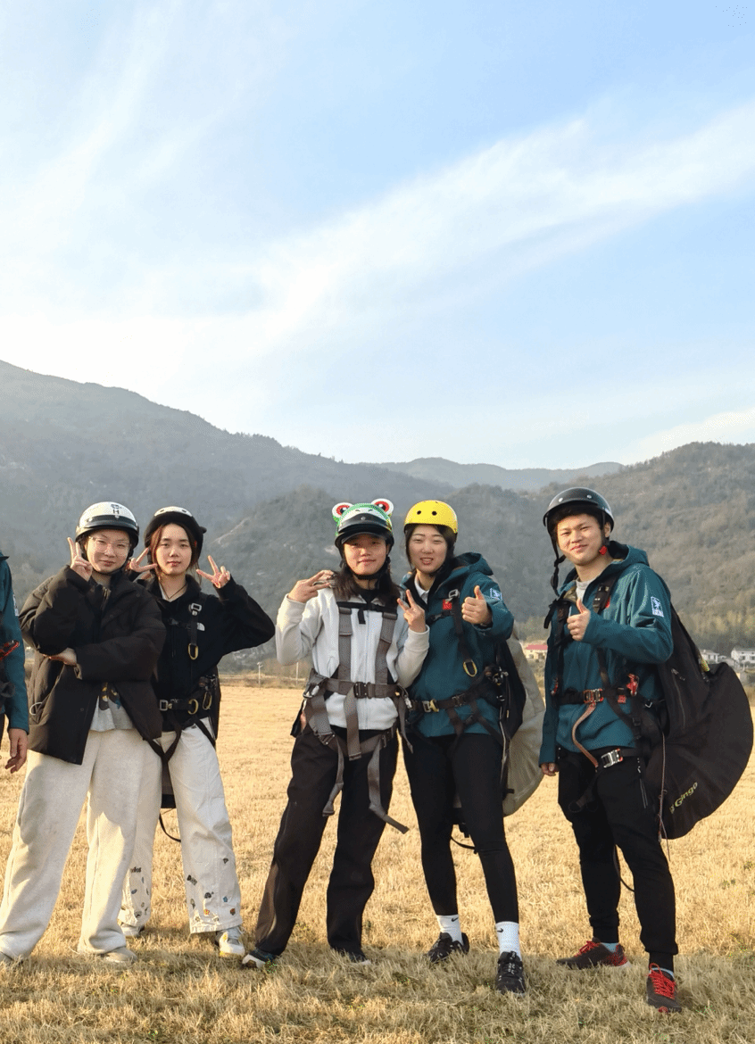 谭运鑫、周晓丽、尹乐彤三位同学齐聚黑麋峰,刻苦练习滑翔伞技能,从地面基础训练到克服高空恐惧,最终成功考取中国航空运动协会滑翔伞A级证书。乘风翱翔、俯瞰大地,他们在突破自我中收获成长,也为未来发展开辟新方向。