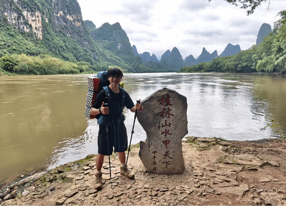 李宇航同学以脚步丈量漓江美景,沿崎岖步道翻山涉水,在晨雾渔舟、凤尾竹影中,沉浸式感受桂林山水的诗意。这场徒步不仅是强身砺志的实践,更让他在行走中领略祖国山河壮阔,厚植家国情怀。