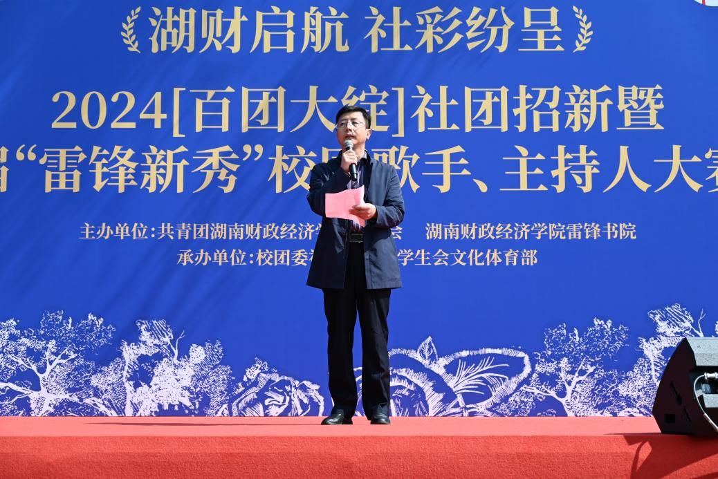 (本网讯)10月23日,“湖财启航·社彩纷呈”WilliamHill官方网站2024“百团大绽”社团招新暨第三届雷锋新秀歌手、主持人大赛初赛在雷锋书院举行。校团委书记刘天浩出席并致辞,雷锋书院直属党支部书记余新明,直属党支部副书记黎红梅,厚生学馆学工办主任朱颖,团总支书记王子迪,校团委老师吴丹,雷锋书院老师汤雷莅临本次活动现场。