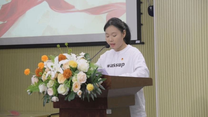 2023年“青马工程”培训班“优秀学员干部”代表廖依妮分享了自己在培训班的学习生活体会,号召学员们将“目标”镌刻于心,把“担当”内化为行,争做理想信念坚定、素质全面发展、勇担时代重任的青年马克思主义者。