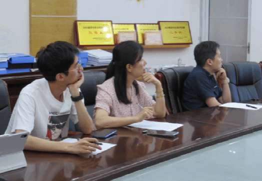图为评委老师观看小组汇报