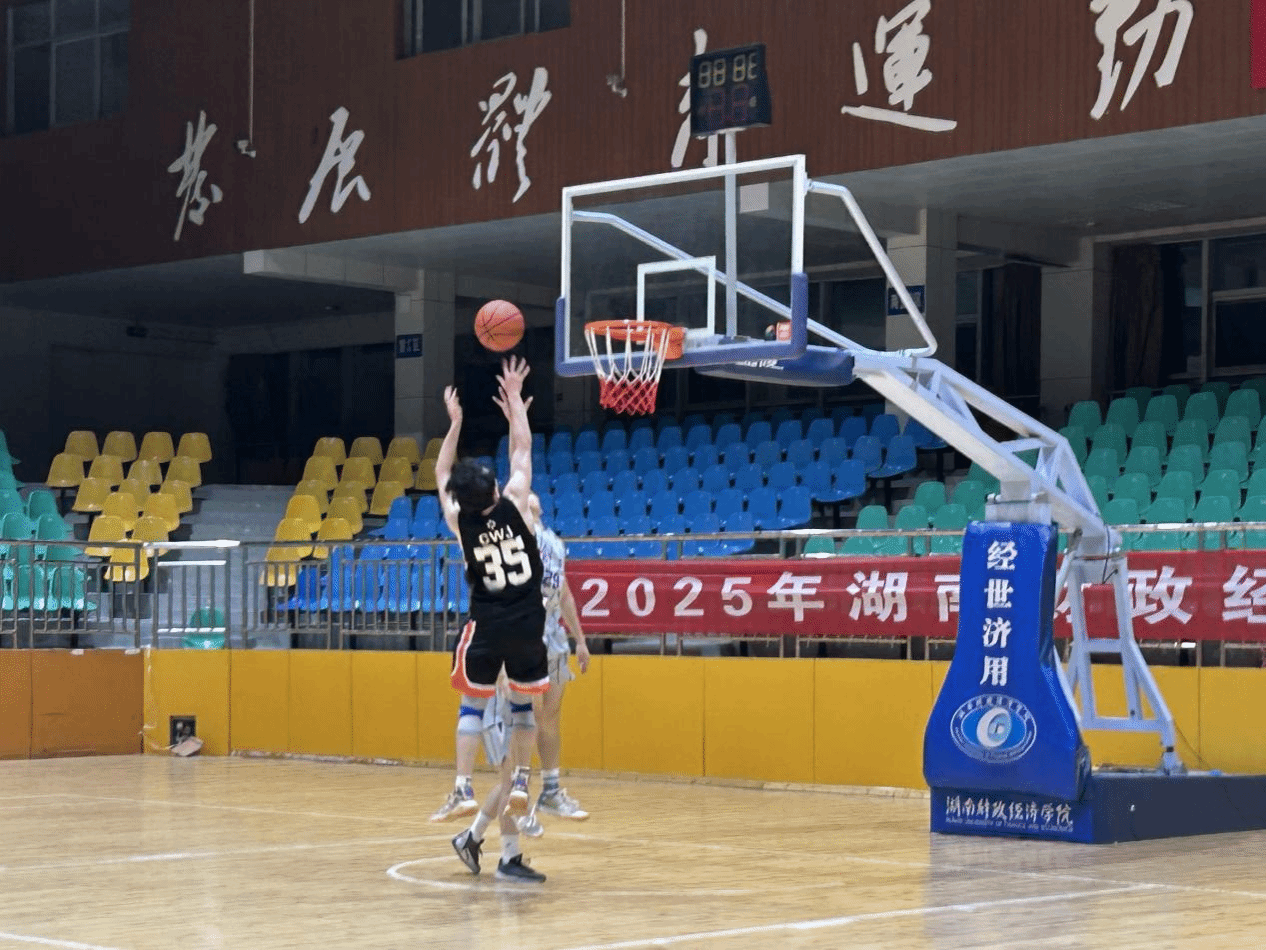比赛开场,会计学院展现出强劲攻势,我院球员沉着应对,通过精妙的传切配合和灵活的跑位频频制造得分良机。场上球员们挥汗如雨,双方你来我往,比分交替上升。随着比赛进行,外国语学院团队配合渐入佳境,球员们积极沟通战术,在场上全力奔跑夺分。我院11号胡锐淳、22号张争、35号曹文杰三位球员数次冲击篮框。其中,35号曹文杰篮下多次成功断球,突破对方防线,防守能力出色,接连为队伍创造得分机会。场边观众的热情助威声此起彼伏,将比赛氛 围不断推向新的高潮。