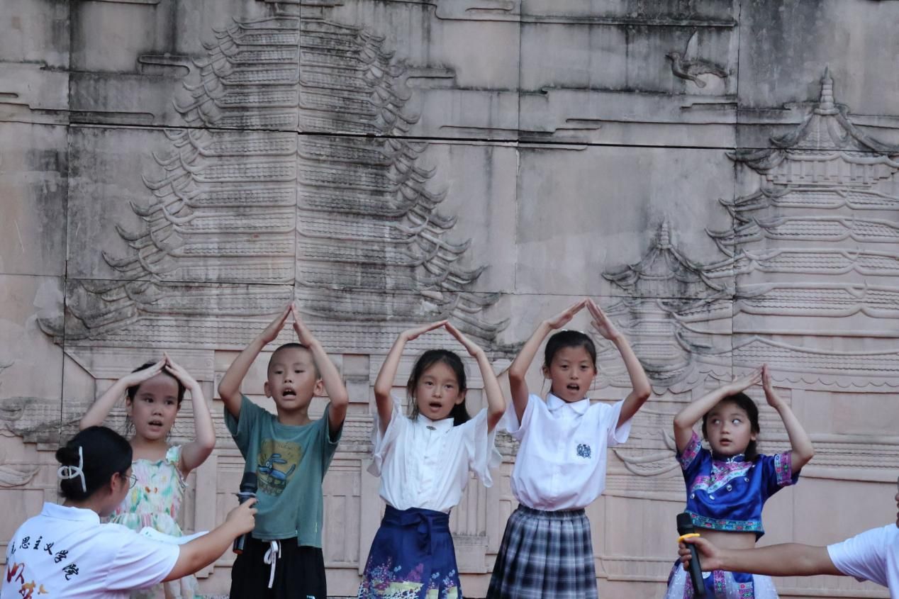 随后,青叶树村孩子们诗歌朗诵、舞蹈、合唱表演轮番上演。孩子们化身“小小朗诵者”齐诵《我爱祖国》,清脆如雏莺的童声朗诵和激情十足的手势动作,饱含着对祖国诚挚的情感。一段萌趣可爱的《猪猪侠》舞蹈,一首纯真烂漫的《虫儿飞》歌曲,每一个跳跃的舞步、每一句稚嫩的歌声,都诉说着童年最纯粹的快乐与希望。