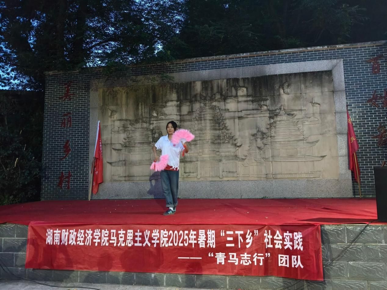 接着,“青马志行”队演唱温暖治愈的《肆意生花》歌曲,向村民们道出了绵长温柔的陪伴之情。由“青马志行”队伍成员和当地村民组成的“飞哥小分队”,以一曲《水手》搭建青年朋友情感交流的桥梁,生动诠释了团结协作的精神。《闪耀歌曲》的激情展现再次点燃晚会气氛,最后经典花鼓戏《刘海砍樵》的精彩表演为本次晚会画上圆满句号。