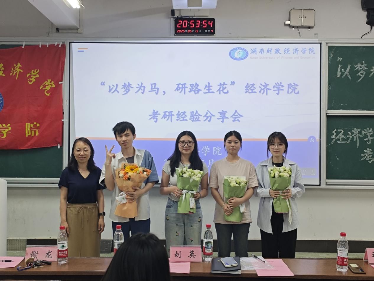 为助力学生深入洞悉考研政策、明确学习路径,并科学规划复习策略,经济学院于5月15日晚上19:00在3108成功举办了“以梦为马、研路生花”考研经验分享会。本次分享会特邀我院21级优秀考研上岸学生分享考研经验,参加本次分享会的有经济学院院长李勇辉、院党委副书记刘英、学工办负责人谢龙、26届辅导员王竹青以及22、23级意向考研的同学。