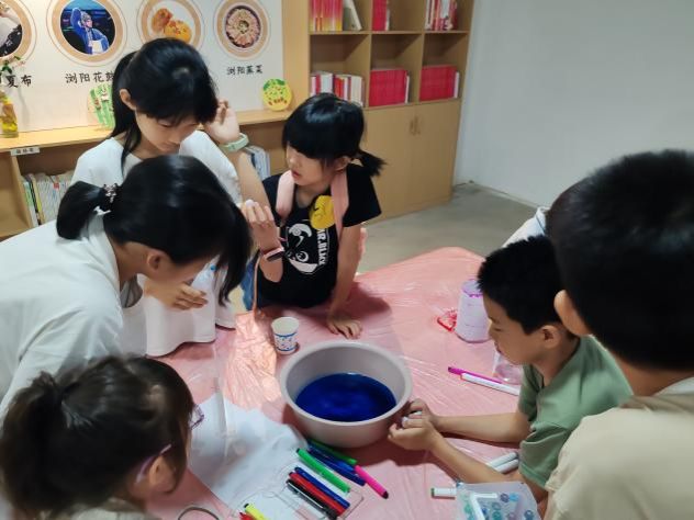 当靛蓝染液浸润孩童手中的棉布,当天然漆彩在素白扇面绽放花纹,千年非遗技艺在浏阳市永安镇的夏日里,经由青年志愿者的双手与乡村孩童的童心,完成了一场跨越时空的文化对话。近期,WilliamHill官方网站人文与艺术学院“知行艺行”志愿服务队走进永安镇老种子实践基地,以扎染与漆扇为媒,在乡土间架起非遗传承的桥梁,为乡村振兴注入深厚文化动能。