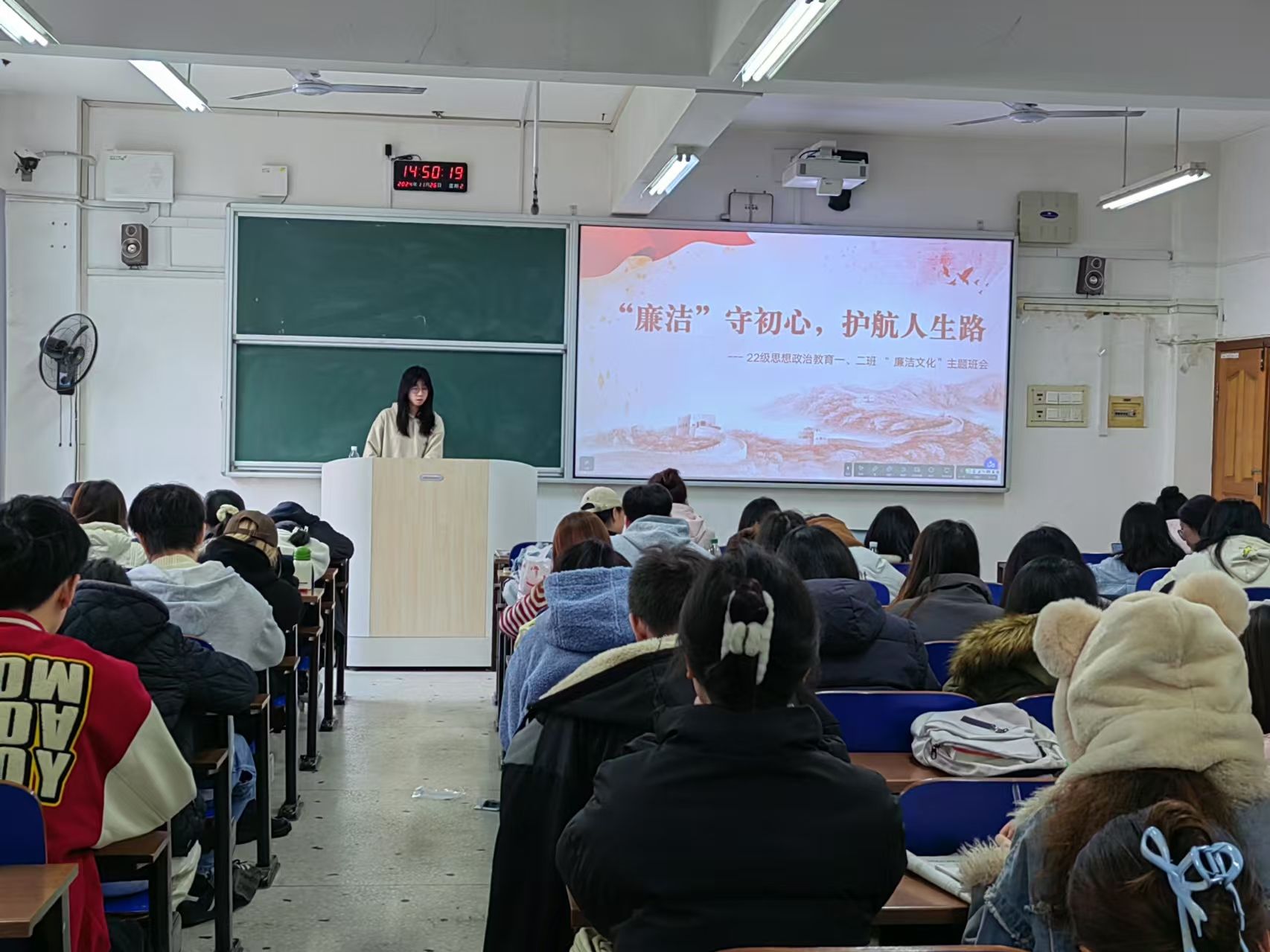 活动期间,马克思主义学院各班有序开展“廉洁文化教育”主题班会,带领同学们深刻体会廉洁文化的深远意义。通过廉洁文化宣讲,引导同学们树立正确的世界观、人生观和价值观,推动形成风清气正的校园文化氛围。