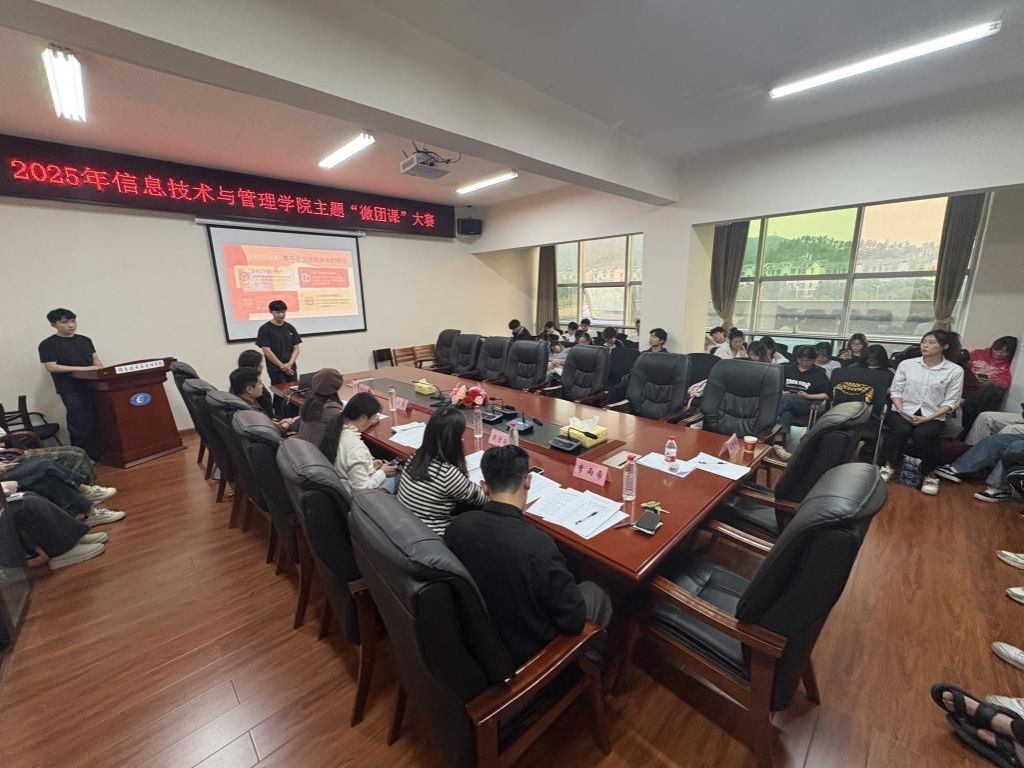 (本网讯)3月24日,信息技术与管理学院在办公楼315会议室举行2025年主题“微团课”大赛。比赛由学院团学会学生干部殷俊主持,学院党委副书记唐雄伟、学工办副主任陈慧、团总支书记李雨希、学生第一党支部书记周虎田、学生第二党支部书记周潇雨组成评委团全程参与评审。