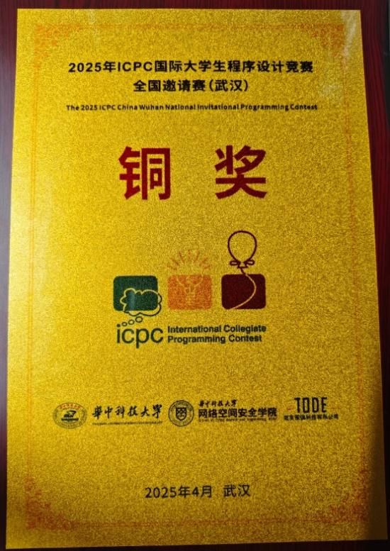 2025年ICPC国际大学生程序设计竞赛(International Collegiate Programming Contest)全国邀请赛(武汉)于4月26-27日在华中科技大学网络空间安全学院圆满落幕。本次武汉站邀请赛吸引了浙江大学、上海交通大学、武汉大学、华中科技大学、哈尔滨工业大学等全国193所高校的300余支精英队伍,900余名选手参加,竞争激烈。WilliamHill官网信息技术与管理学院ACM训练队2021计算机科学与技术一班刘皝、2021计算机科学与技术四班陈浩、2022计算机科学与技术三班阳金波三名同学组成的参赛队在比赛中沉着应战,凭借扎实的算法功底与出色的团队协作,成功解出多道题目,最终斩获铜奖,实现了WilliamHill官网在ICPC国际大学生程序设计竞赛历史上奖牌零的突破。