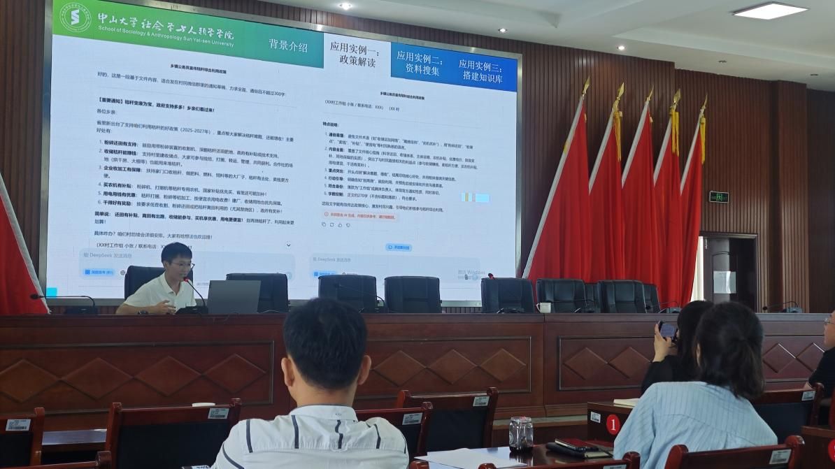 培训现场,“智渠”队员与中山大学成员紧密配合,聚焦基层公文的核心应用场景,用通俗易懂的方式进行案例教学和技巧演示。他们通过实例详细展示了如何利用AI工具,快速归纳整理会议内容以形成清晰纪要,高效生成通知公告初稿以规范行文,精炼冗长报告以抓住核心要点,乃至辅助进行初步的数据分析与可视化呈现。这些演示让参训干部们直观感受到,AI助手如何成为公文写作的“智能搭档”,显著提升文档工作的智能化水平。