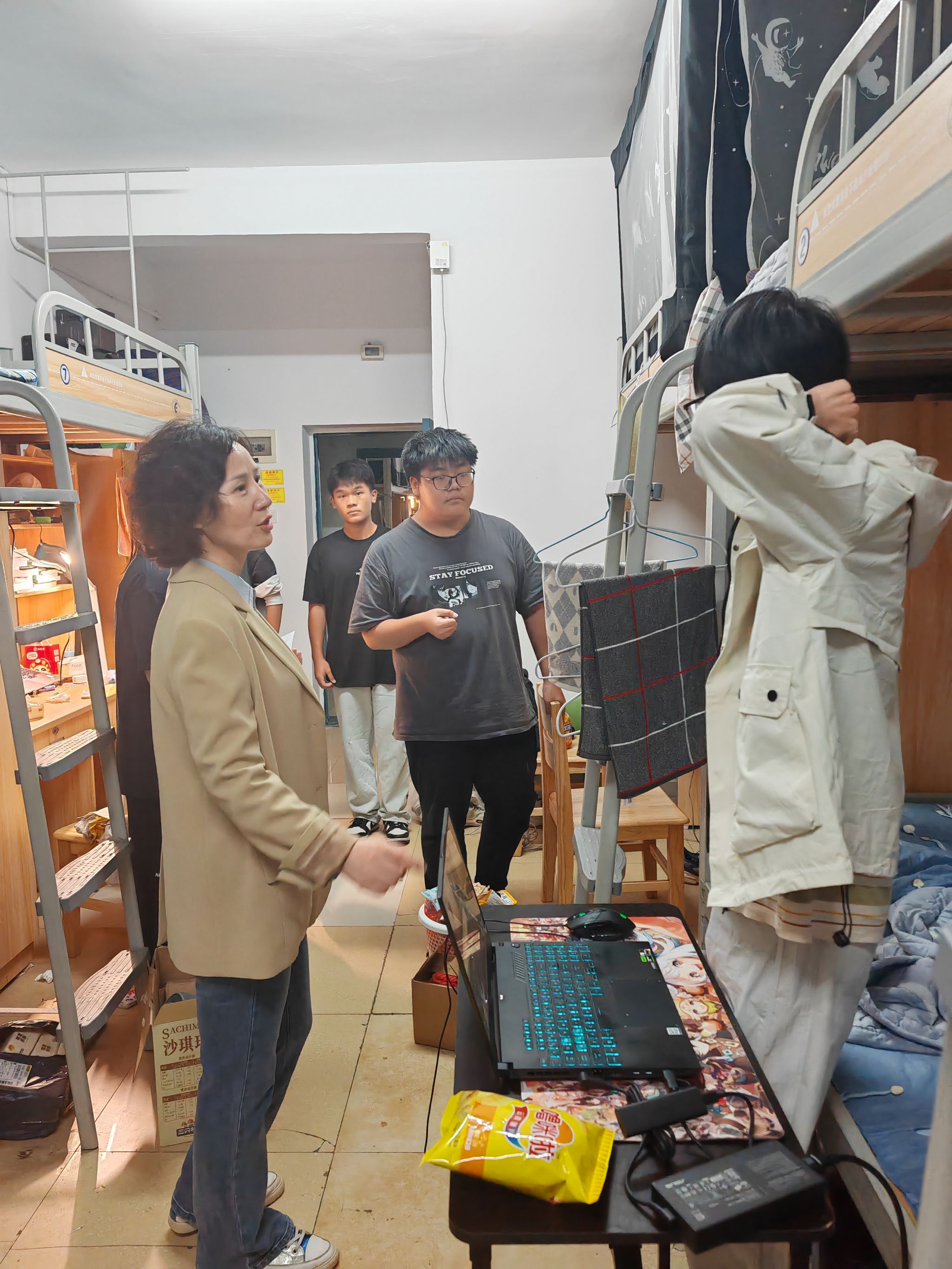 唐雄伟检查宿舍卫生和安全用电情况