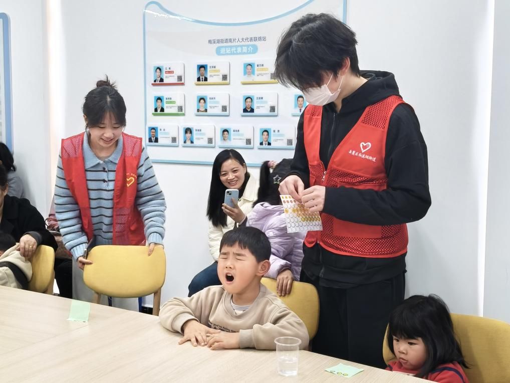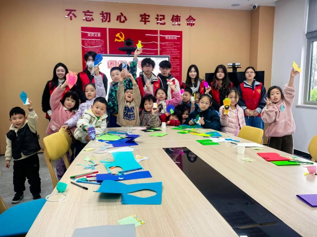 现场,志愿者们蹲下身子与孩子们平等交流,用生动的语言讲述故事,在手把手指导折纸、粘贴的同时,为每位完成作品的孩子贴上奖励贴纸。“看到孩子们亮晶晶的眼睛和开心的笑容,一切都值得。”一位志愿者笑着说道。轻松活泼的互动,不仅让孩子们收获知识与快乐,也让志愿者的青春在陪伴中闪光。