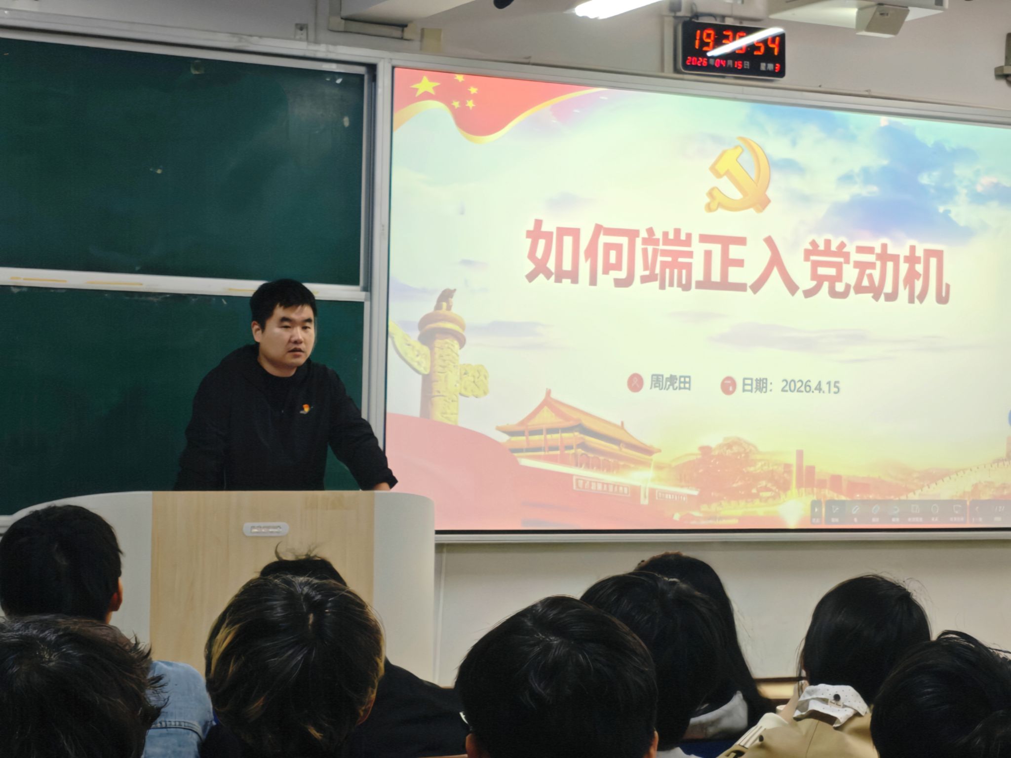 第二堂党课由周虎田主讲。他以“如何端正入党动机”为核心,结合自身多年学生党建工作经验与优秀党员成长案例,深入阐释了正确入党动机的核心要义,拆解了功利化、盲目化入党动机的危害,引导学员们从思想上、行动上全面向党组织靠拢,树立为人民服务、为共产主义事业奋斗终生的理想信念,在日常学习生活中以党员标准严格要求自己。