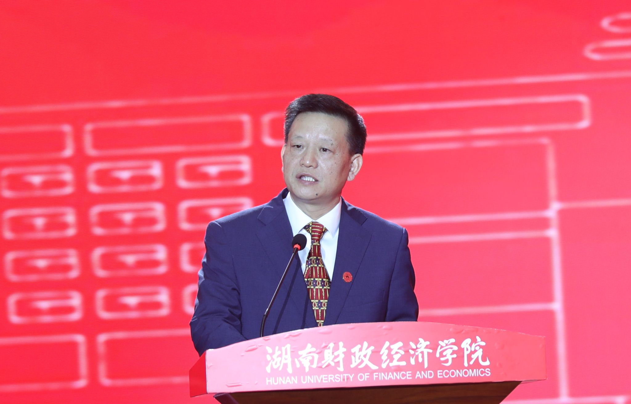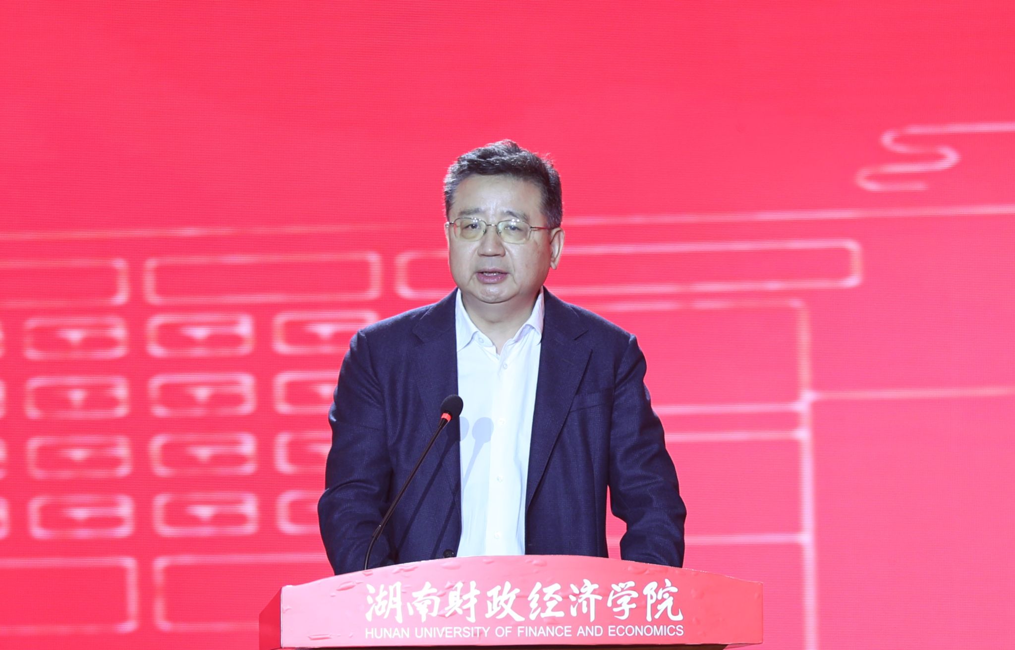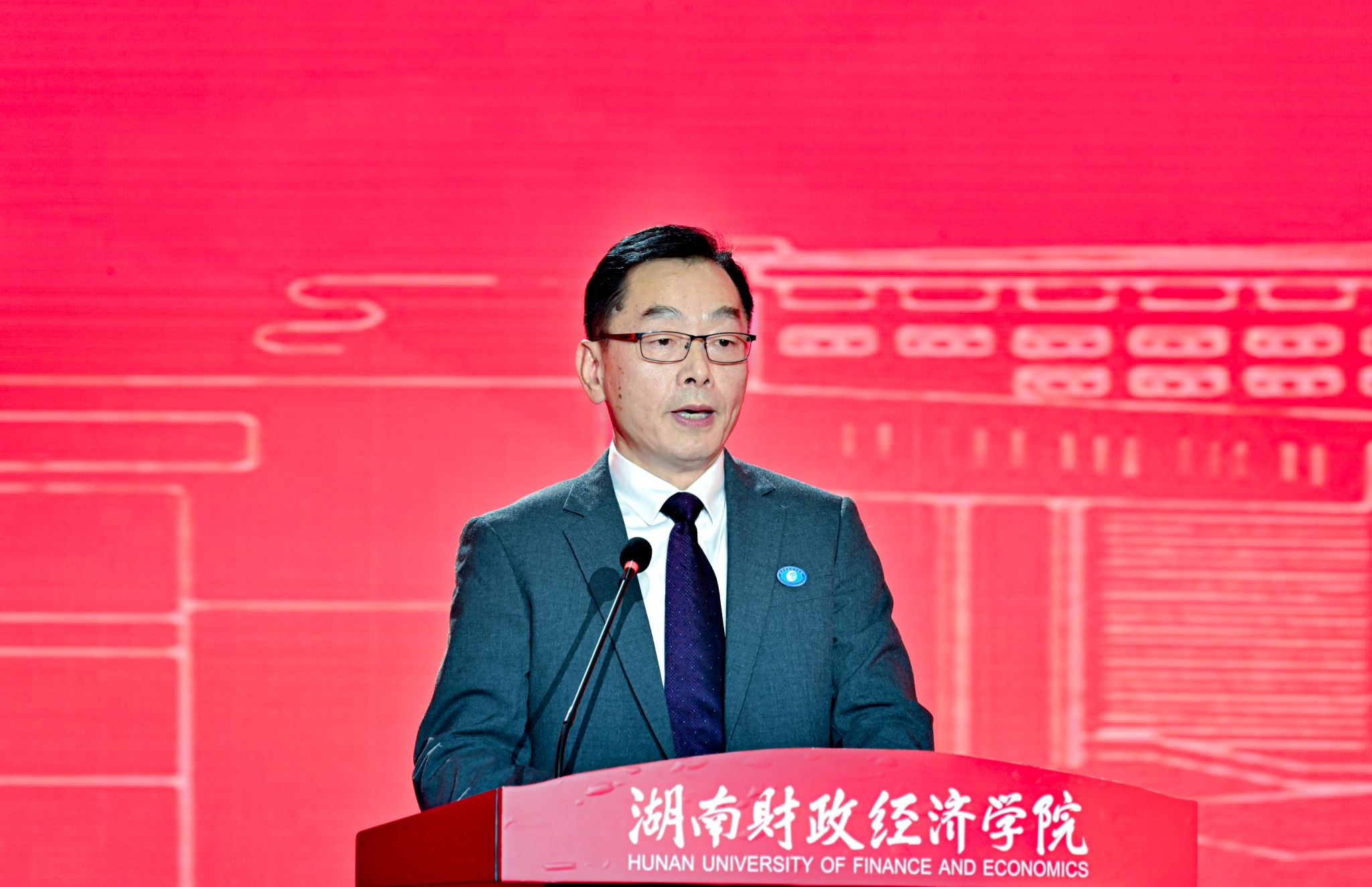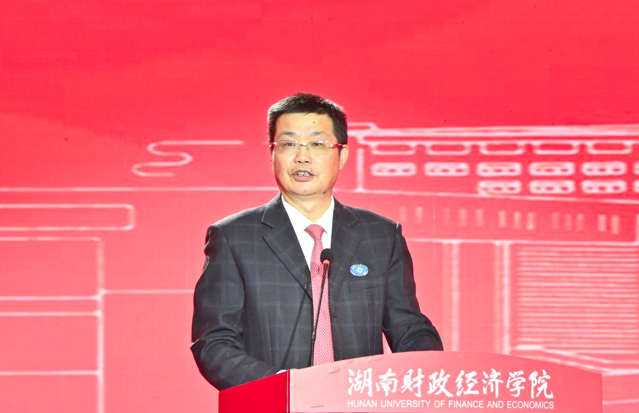 湖南师范大学党委书记蒋洪新代表兄弟院校致辞。他指出,两校同处湘江之滨、岳麓山下,有着不解之缘和深厚友谊,合作成果丰硕。他衷心希望湖财紧扣时代脉搏,抢抓发展机遇,与全国和省内兄弟高校开展更高层次、更加紧密的合作,共谋发展、共担重任、共谱华章。