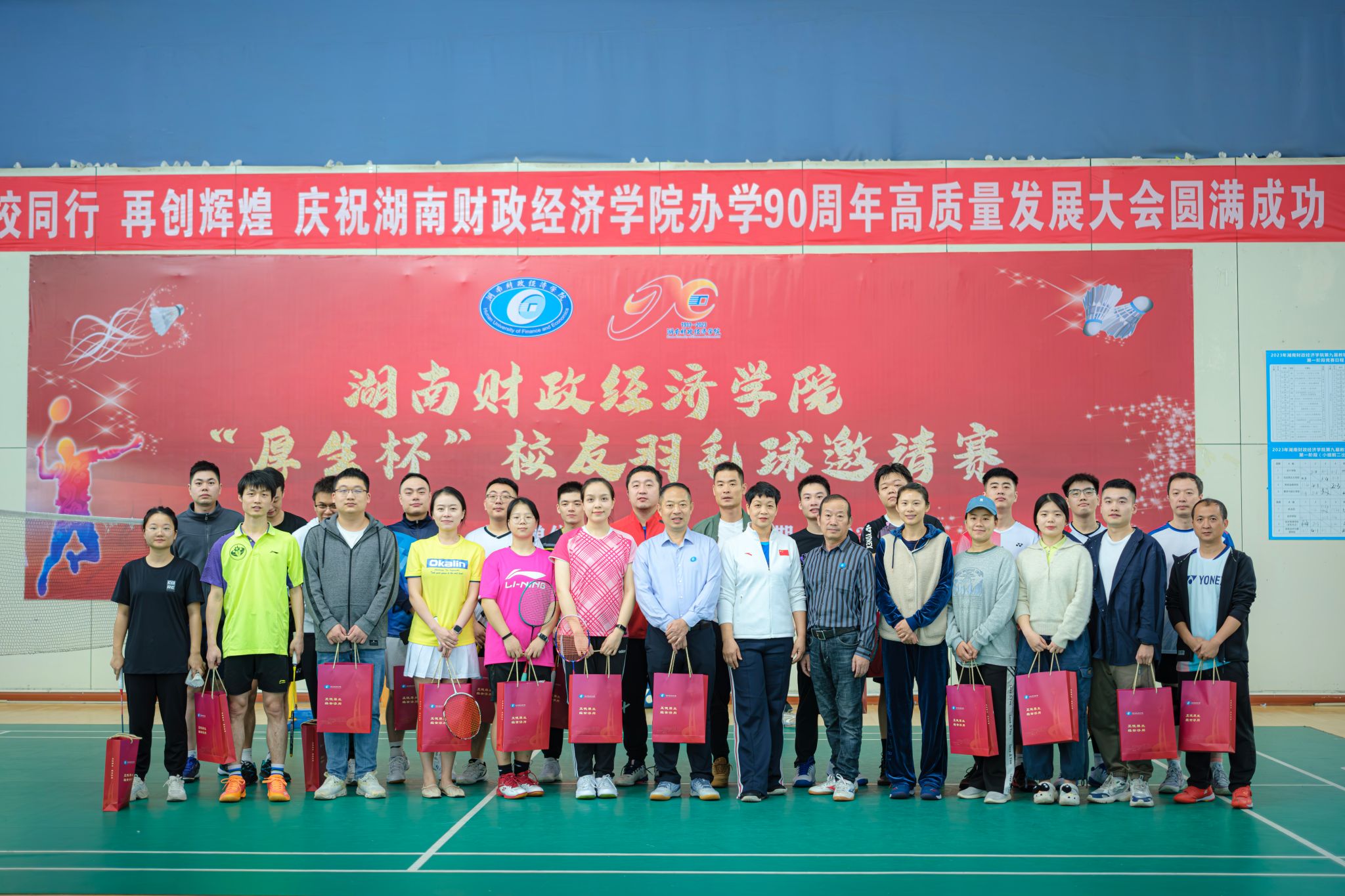 赛后,校工会常务副主席卿文洁、工会副主席兼女工委主任王牡娣为参赛校友颁发了办学90周年伴手礼并合影留念。
