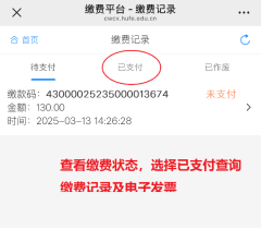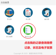 (三)缴费查询:扫描二维码登录,选择“我的记录”,选择“已支付”,查看缴费记录和电子发票。